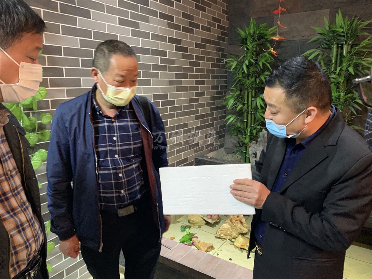 随后,李春桥董事长带来大家参观湖北万硕展厅,湖北万硕专注于内外墙面及顶面装饰,主营产品为软瓷砖,软瓷砖具有轻薄、防火、防水、防潮、耐腐蚀等性能。万硕软瓷砖产品设计汲取了传统文化精髓,融入中国现代化雅致元素,运用传统的仿古青砖、藤、麻、石纹、木纹、皮纹、水墨画等自然纹理,形成了万硕软瓷返璞归真的设计风格。
